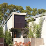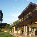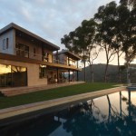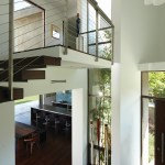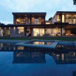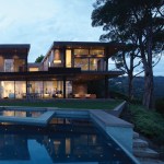This house is sited on a tapered cul-de-sac lot and it incorporates double storied, over-scaled porch elements with a discrete entrance and deliberate entry sequence that reveals the views in a dramatic fashion. From the rear, horizontal layers emerge from the landscape, while the presence at the entrance of the house is distinctly more urban and vertical.