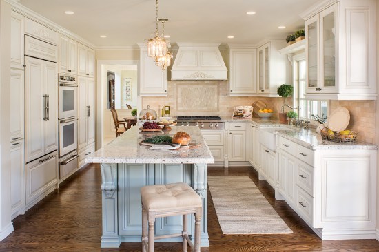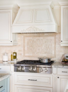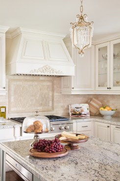Our client loves to entertain family and friends, but the original kitchen was too dark and restrictive. It did not allow for any sort of connection with the surrounding areas. She envisioned her new kitchen as a space everyone could enjoy, where she wouldn’t feel isolated from her guests in the adjacent room. Our approach was to push out the exterior wall and add 24 square feet to accommodate more counter space, larger appliances, and a new island. Equally beautiful as it is functional, the island was an essential design choice for our client as she wanted a workspace that doubled as an entertainment opportunity. The original kitchen was anchored by a bulky peninsula and upper cabinets that created a strong division between the kitchen and the family room. Although plenty of sunlight touched the home, the dark upper and lower cabinets blocked the kitchen from receiving natural sunlight and so were removed. To brighten the room even further, a soft cream-colored backsplash was used to complement the bright but neutral paint used on the walls and kitchen cabinetry. The rectangular shaped stone decoratively creates an artful break in patterns that have a more organic feel and look. A polished granite from Marbolis in White Ice was used on the kitchen countertops to create a dramatic and more contemporary look.
