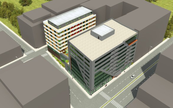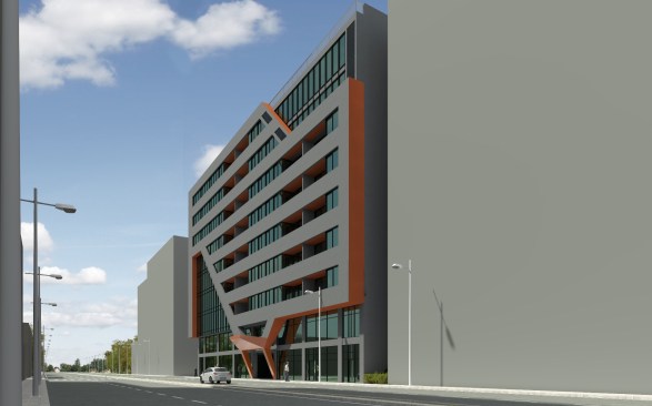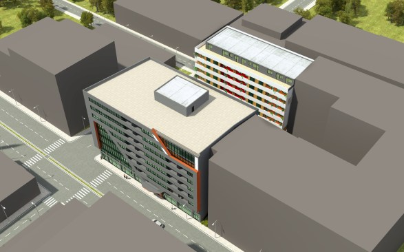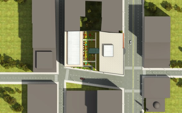 The building consists of offices and shops.The first floor and ground floor were integrated into the rear housing block. Entrance shade that defines the entrance of the shop, formed by the maintenance of the movement of the facade which gives the character of the structure.