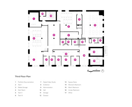 The new campus aims to be a cohesive learning community that serves as a cornerstone of arts education for diverse communities throughout Chicago. The program includes a renovated main public gallery for student work, a student and family lounge, alumni gallery, library, administrative offices, and nine state-of-the-art instructional studios for painting, printmaking, photography, graphic design, film, animation, textile arts, sculpture, and ceramics.