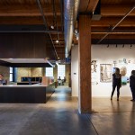 The expansion included a new entry and parking court, a 950 square-foot steel-and-glass multiuse loggia space, an additional 15,000 sf of new and renovated studio spaces, as well as new windows, HVAC, roof, solar panel array, and building signage.