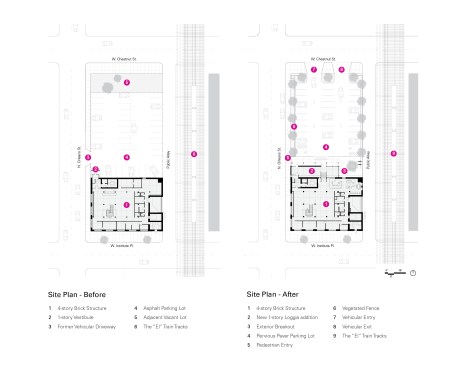 For 15 years, Marwen’s physical presence to the public and neighborhood went largely unnoticed. As an internalized tenant on two floors of a four-story industrial loft building, the ambitious and inspiring center for visual arts wasn’t perceived from the outside. The purchase of the building and adjacent lot allowed Marwen to expand to create a fully realized arts campus. With its new presence, Marwen conveys to the public its thoughtfully composed mission and vision, just at it has always done from the inside only.