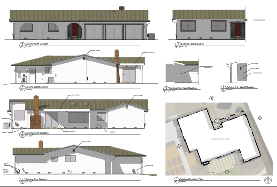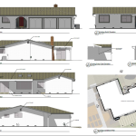 The homeowners of this 1970’s suburban ranch home had modernized their home’s interior to a more minimal, modern style and wanted to apply the aesthetic to the home’s facade. Their goal was to completely transform the exterior, upgrading its blah, pseudo-Spanish ranch style to a bold modern aesthetic. The main objectives were to abandon the arches at the front porch, create a clearly defined entryway with a strong sense of architecture, and give the home more curb appeal with new garage doors and a mix of modern materials such as aluminum, glass and flush-profile siding. Re-surfacing the brick fireplace chimney at the rear of the home presented a unique challenge. Both the client and contractor wanted to avoid the expense of re-building the fireplace and the potential interior challenges that option presented. Instead, the designer and engineer proposed adding metal framing to the existing fireplace structure to create additional support for the stacked stone the would wrap the chimney. This cost-effective solution eliminated any work to the home’s interior and involved minimal modifications to the roof.