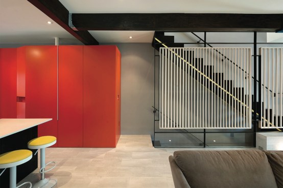 transformed the previously segmented floor plan into an open living area. The addition of large windows on both levels