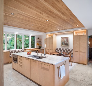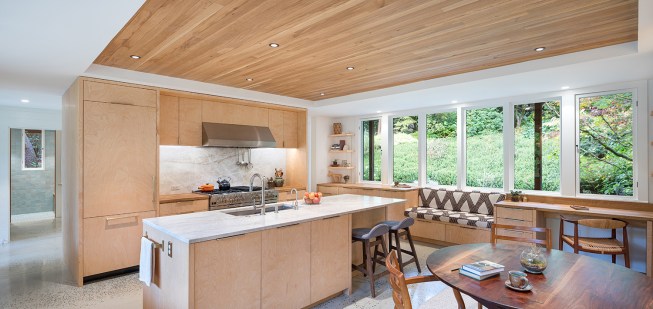 This mid century gem was originally designed by Pietro Belluschi and built in 1940. The home was designed as a humble, modern backdrop to the 2.6 acre orchard that would become a renowned garden property. After many unfaithful updates to the service core of the house, the family sought a mending solution in the spirit of the original design. The intervention by Outside Architecture in 2018, strengthened the home’s connection to the garden in the form of a new kitchen, mudroom, bathroom and studio. The new design knits with the original, but with current energy efficient construction.