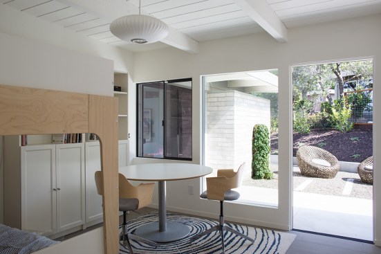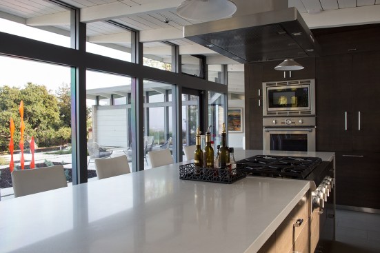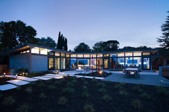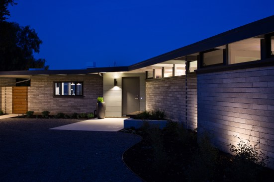 Klopf Architecture, Outer Space Landscape Architects, and Flegels Construction updated a classical 1950s original mid-century modern house designed by the late Frank Lloyd Wright apprentice Ellis Jacobs. Klopf Architecture pushed the original design intent to make the house more open and uniform from space to space, while improving energy efficiency, capitalizing more on the already incredible views, improving the flow of spaces, providing an outdoor living area, and ratcheting up the quality level of the home in general. The updated custom Mid-Century Modern home is a remodeled single-family house in Redwood City. This 2,000 square foot (plus garage), 3 bedroom, 2 bathroom home is located in the heart of the Silicon Valley.