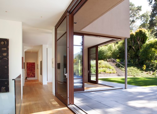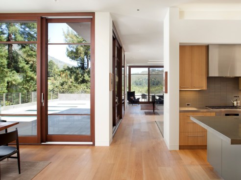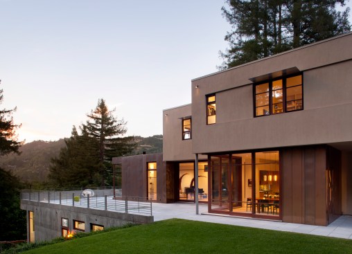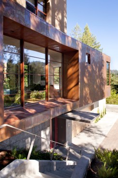 This 5,000-square-foot house in Mill Valley was designed as a home for an empty-nester couple. The site was the inspiration and the guiding element for the architecture: vast views of Mt. Tamalpais, intimate connections to groves of redwood trees, and a steep incline. Given its location, stepping up the hillside and squeezed between redwoods, the home is stratified into three levels. The lower floor is built into the hillside, while the upper two are open to daylight and views.