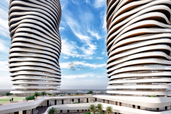 The idea of dynamic shapes and geometry remains fluid to inside and outside buildings and immediate surroundings.