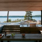 Fishing is one of Nova Scotia’s oldest industries, demonstrated by the weathered fishing shacks lining its coast. The Mirror Point cottage demonstrates the frugality of the Nova Scotian vernacular in an elegant manner. The rusted steel aedicule contains a sunken outdoor summer kitchen, which offers a sheltered place at grade for the grandparents to watch their grandchildren playing on the beach.