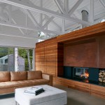 It is designed with a respect of traditional coastal language and employs a formal inventiveness with common local materials. Materially this is a ‘sweet and sour’ building, combining the highly crafted cedar millwork with banal economical gang nail trusses, which are common in contemporary North American House construction. These ‘gang-nail’ wood structural components were used extensively to reduce the amount of structural steel and cost. These ordinary materials, normally covered up, are celebrated in the living and dining space.