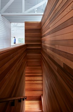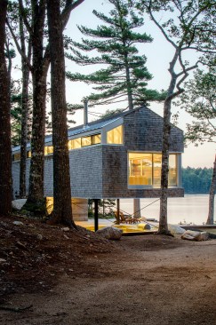The exterior is clad in local eastern cedar shingles and a standing seam metal roof. With its inherent high level of environmental sustainability, its affordability, and its subtly refined aesthetic, our practice builds upon this understated, everyday language of construction, through projects like Mirror Point.