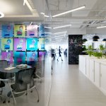 The concept of “Ma”, a type of spatial quality that exists in between elements have been inserted into this project by way of defining blurred boundaries set by configuring different levels of transparencies when moving from one space to another. This varying level of permeability creates diversity in an otherwise long and linear office space. We also created a discussion space with a café-setting in between two departments to buffer the work environment complimented with a casual scent of coffee.