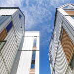 Montisi Studios presents a balance between maximizing density as afforded by zoning and embracing the residential character of its West Seattle neighborhood. The most striking features are the intersecting gable roof forms, reducing the scale of the building and complementing the surrounding historic homes. Angled windows following the pitch of the roof create a unique street presence and dynamic spaces within the upper level studios. The board and batten siding punctuated with warm wood accents provides texture and warmth at a traditional scale while metal and concrete accents lend subtle modernity to the project.