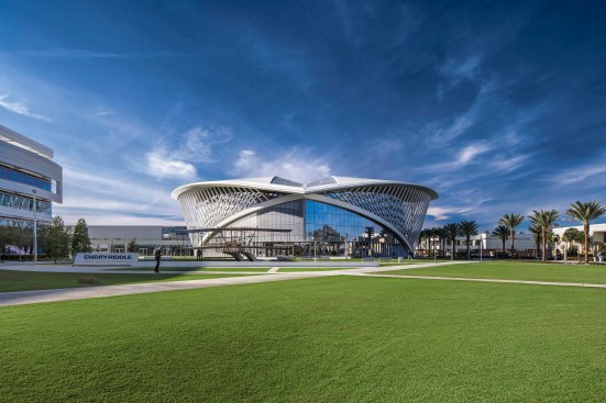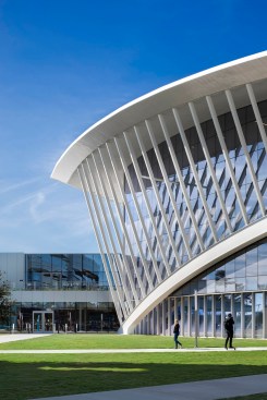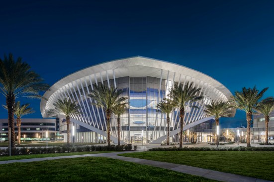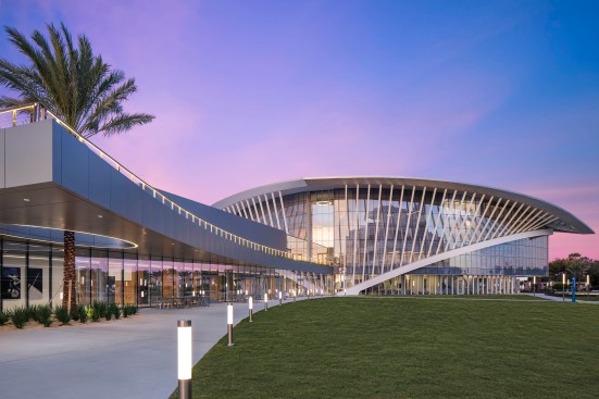 Inspired by the gracefulness of birds in flight, the student union building at Embry-Riddle Aeronautical University is an expression of its mission to teach the science, practice and business of aviation and aerospace. Located at the front door to the campus, the building’s gently soaring form expressing flight creates an iconic identity for the University and embodies the student values of fearlessness, adventure and discovery.
