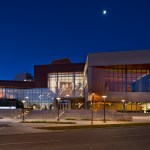 The Taylor Centre establishes a dramatic new front door for the eastern edge of the rapidly expanding Mount Royal University campus. A large elevated ensemble performance studio, located at the corner of the site at the TransAlta Pavilion, features a window wall that allows performances to be visible to passersby. Multiple instructional spaces, such as ensemble rooms, individual and group practice rooms, and master classrooms provide a flexible learning environment for students, enhanced with several breakout spaces for impromptu practice or socialization. The most prominent feature of the facility is the new 800-seat Bella Concert Hall, designed with 10 theatre boxes, an 89-seat choir loft, and full multimedia capability. The plaza and open space that form the Centre’s forecourt knit the building into the fabric of the campus, while serving as a space for informal events and performances. A multilevel lobby and roof terrace provide dramatic views to the campus, as well as the surrounding region beyond. The facility is designed to LEED Gold certification.