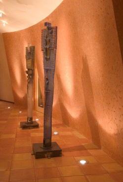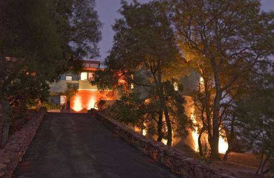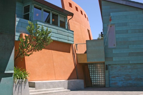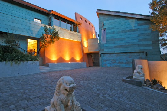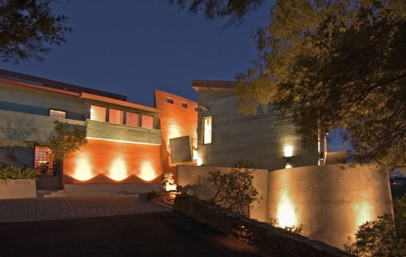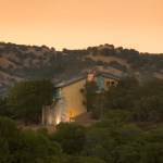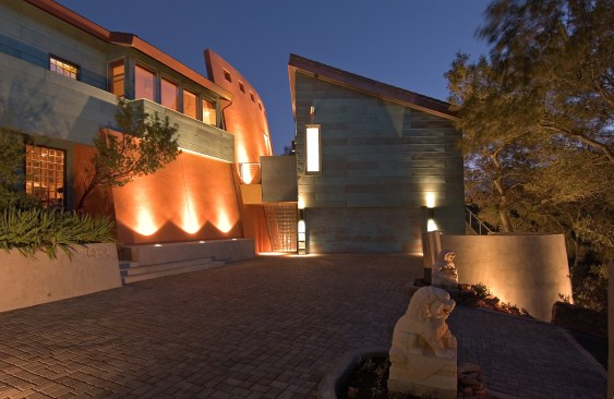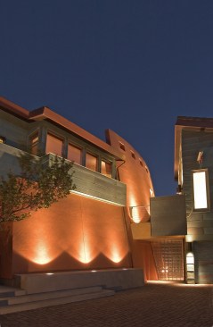 Mountain Aerie House is a mountaintop dwelling clad in copper and designed to celebrate the owner’s passion for collecting and creating art. Gallery spaces link all aspects of the home. A system of unique features, including an elevator large enough to bring paintings and sculpture to the upper level and a “low-tech” winch, allow paintings to be lowered from the studio window to support the functionality and delight of the 6,850 square foot retreat nestled in the oaks.