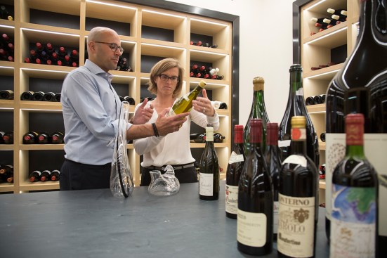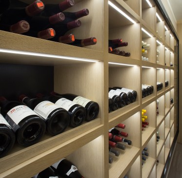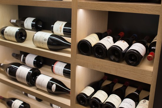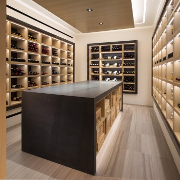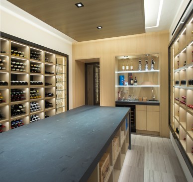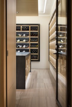 Rowland+Broughton transformed an existing inadequate wine tasting room that had limited functionality, as well as minimal storage and temperature controls. Our design team successful corrected those limitation and created a new space which has a calm elegance and sophisticated refinement. Uniform grids of white oak bins are recessed into the wall and framed in blackened steel. The center piece is a substantial display table made of honed black slate with waterfall edge countertop and additional built-in storage. A white oak ceiling cloud is centers over the display table and features hidden light coves providing additional depth to the space.