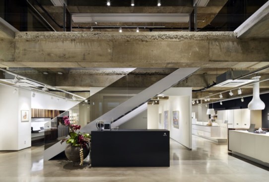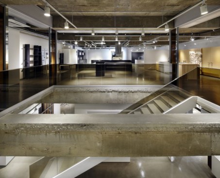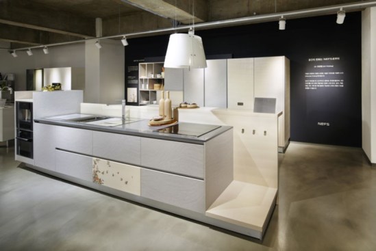 The exhibition hall is located in the 2nd and 3rd floor. Other exhibition area and design lab are in 4th, and headquarters office is located in 5th~7th stories. The architect suggested space without boundaries between exhibition and office. In other words, the whole stories are exhibition hall and the office at the same time. For clarify Nefs’s identity, the architect placed a pantry room at the entrance of the office place, at the opposite side of an elevator hall. The idea let workers use the kitchen over one hundred million won, have design experiences, and use the kitchen as an exhibition hall when they meet customers.