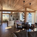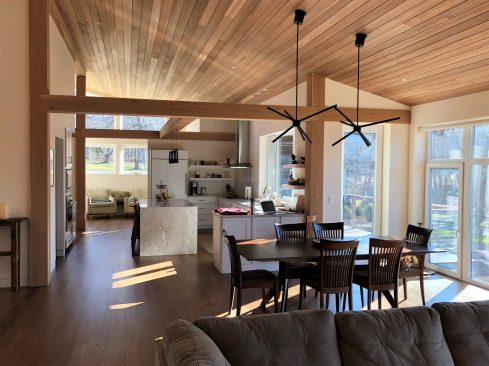 -Vaulted red cedar plank ceiling, wood beams, and white oak flooring throughout 1st floor