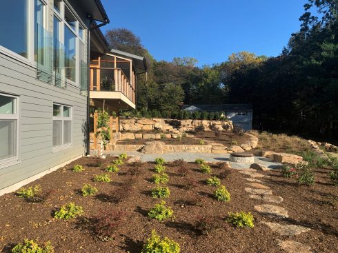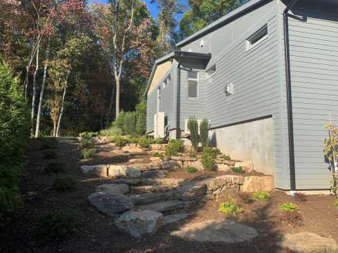 -Extensive landscaping using ledge stone recovered from ledge removal