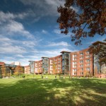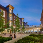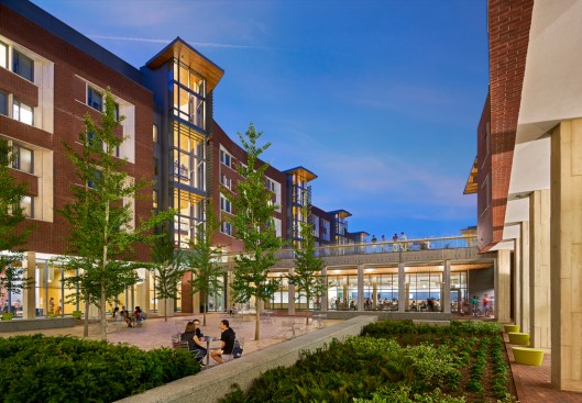 Bohlin Cywinski Jackson was challenged to engage a vibrant college community into the campus and the city on all four sides of the building, while also securing the College House by a single point of entry. The design team responded with a unique configuration around two iconic outdoor spaces to accomplish these goals: a flourishing, active courtyard secured for the exclusive use of the College House, and the lifted lawn, open to residents as well as the greater community. These two spaces look onto one another and use a grade separation to affirm required security.