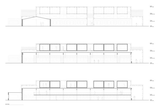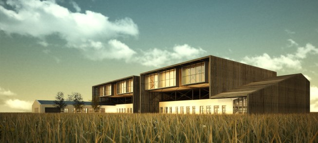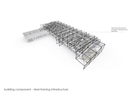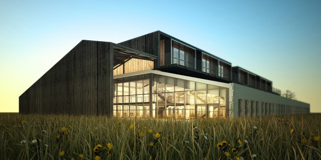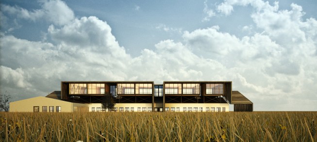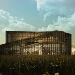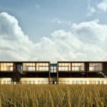 Situated in the Land Arts Park Nikola Lenivets, a natural park 100 miles southwest of Moscow, this project is an adaptive reuse of the existing shell and structure of a concrete barn. The building is a part of a cluster which supported a communal farm during the Soviet Era. Situated along a ridge overlooking the natural park, Moto was asked to create a work studio for architecture and artists along with living accommodations. The existing structure with overbuilt structural capacity allowed Moto to add an additional level with minimal structural adjustments; easily allowing the living quarters to be separated to the upper level. On the ground floor an open and flexible studio space takes advantage of the barn configuration. To create a unification of existing and new, Moto integrated a wood slat system that defines outside space, shades from direct light and permits viewing. The design is both modern, and through the use of local natural materials, referential to historic Russian building techniques.