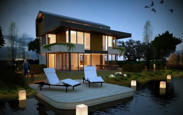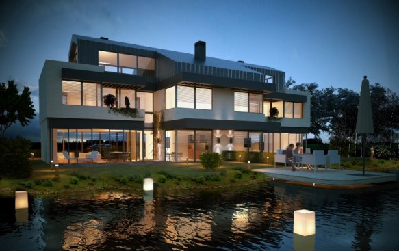 How it is done; to extend the river into the land by creating an artificial pond and solve a layout plan where the garden of each unit has a water access.