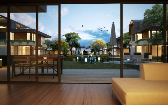 Omerli Park Houses, designed by Iglo Architects in Omerli, aims to bring together users with Riva River and to provide a life in touch with nature by expanding water, one of the most important design elements, to the front of the houses at a great site where green and blue meet.