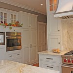 After shaking up the plan by moving walls, eliminating doors and enlarging the window, the new space was furnished with finely tailored cabinetry, quartzite tops and a custom built range hood as the focal point.