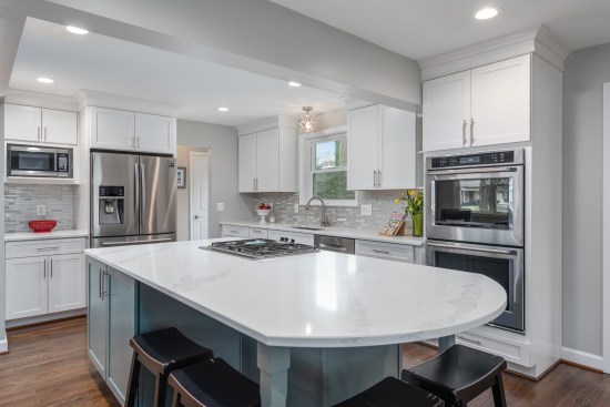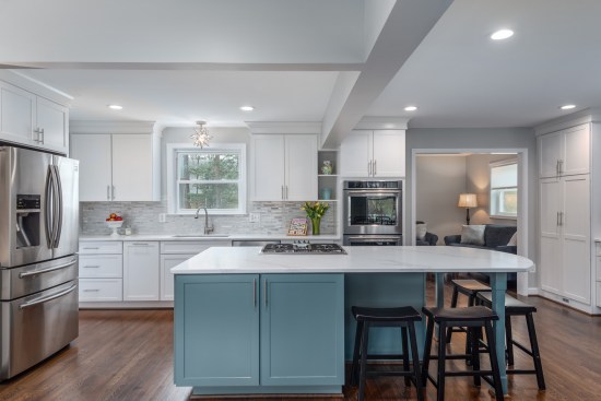 Our clients purchased their home in Fairfax knowing they would eventually want to open up the floor plan. They came to us with a vision of incorporating the galley kitchen, dining room and family room into an open concept design. This required building a small addition on the back of the home.