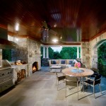 Serious outdoor entertaining was on the menu for this young, active family, and their desire for an outdoor area to accommodate a full range of entertainment options. A large and gracious outdoor porch includes a sitting area, intimate enough for casual conversation, and a dining area serviced by a professional grill and adjacent work space for the serious cook. Entertaining takes advantage of the poolside location and affords views into the landscape at every opportunity. Paddle fans provide a comforting breeze on warm summer nights while the fireplace adds warmth in chilly times. All of these amenities allow the family to enjoy the space throughout the year.