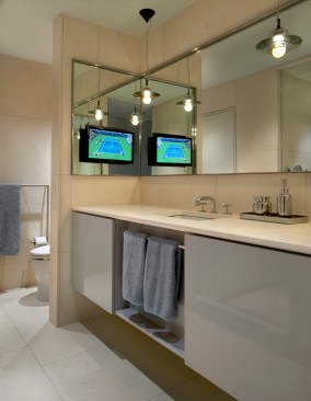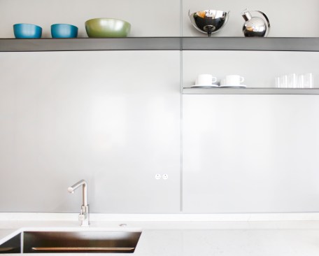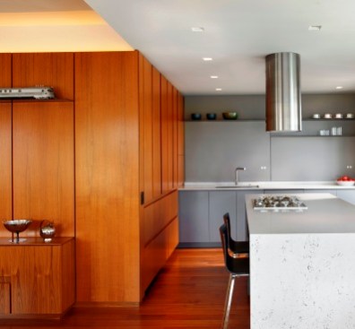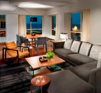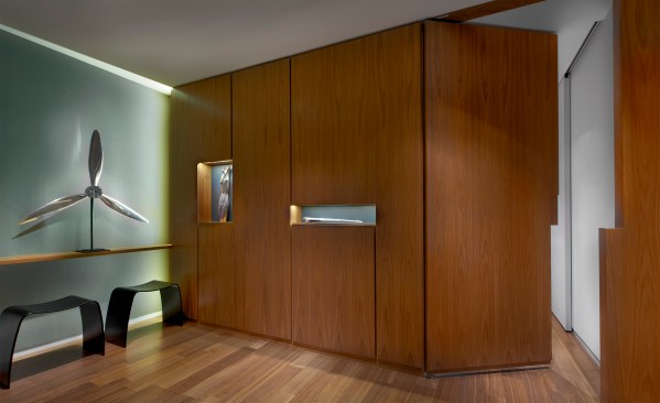 Although in a new, well-located building, this apartment started life marked by a jumbled layout and a set of finishes and details lacking character and finesse. The new homeowner craved a distinctive, refined, and welcoming place to hang his hat and comfortably entertain. The basic configuration of the apartment has been kept with the exception of a handful of critical architectural moves. A telescoping series of sleek sliding doors replaces a solid wall that isolated the study from the main living space. An added ceiling plane and large island expand the original cramped kitchen into an awkwardly over-scaled dining zone. Shifting the walls of the master hall to align it with the main hall creates a continuous line of sight which in turn visually expands the entire apartment and brings light into its darkest reaches. A series of quarter-sawn and plain-sliced American Black Walnut panels wrap the master suite and distinguish the main entry. The walnut extends into the living room as media storage before terminating in the kitchen where it sleekly conceals a wall of hidden appliances. The boldness of the walnut is balanced by a minimalist reworking of the trim, cabinetry, and lighting throughout the apartment. A carefully considered collection of relaxed yet refined furniture complements the architecture.