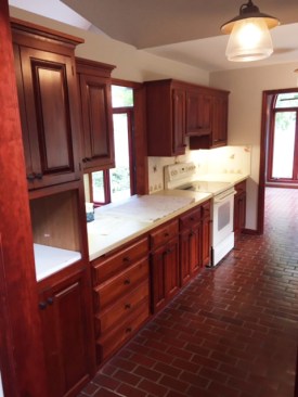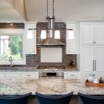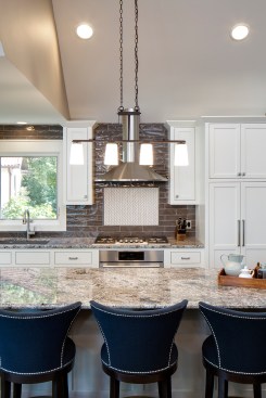 This 1980’s-built, lakeside home was dated, dark, and lacked inspiration throughout. An undercapitalized area of the home that needed significant work was the kitchen. The kitchen offered little to no storage or counter space and was boxed in from the incredible views that Medicine Lake had to offer. One of those walls had a pass-through/serving window, which made the space feel very much dated. Though the area had a long list of issues, it had great potential. Our goal for this project was to create a modern, stylish, and cozy area for the owners that could easily accommodate their love of entertaining groups both large and small. To accomplish those goals, we removed the walls surrounding the existing kitchen, fully gutted the space adjusting framing/loads, and started from scratch. Functionality, flow, and natural light improved instantly once the walls between the kitchen and living area were removed. By removing those walls, the main level was converted into an open layout. This was a challenging aspect of the project, as it required extensive planning to ensure we could safely remove the walls without disturbing the rest of the structure. We wanted to fit a number of features into the kitchen and not have the area feel cramped. This was a challenge as we were working within a small footprint and didn’t want to consume the homeowner’s precious space. The appliances were installed on the exterior wall, which allowed for the installation of a spacious island, which provides the owner’s with ample space for meal prep and additional dining space. Tucked within the island are a number of creative storage solutions, such as a rollout cabinet for garbage and recycling bins, deep cabinets with rollouts that allow for storage of large pots and pans, and a microwave drawer. The kitchen also features white, custom cabinetry, cool toned granite countertops, high-end, stainless steel appliances, dark hardwood flooring, and a unique tile backsplash that extends from the countertop to the ceiling. The space opens up into the four-season porch and the dining and living areas, which we updated as well. This allows the chef of the home to meal prep and still converse with the group while entertaining. The once dark and dated kitchen is now modern, bright, and elegant. Our team successfully created a cozy space for the owner’s that takes advantage of the stunning lake views, is functional for all their needs, and flows with the rest of the open-concept main level floor plan.
