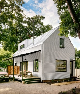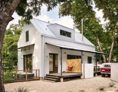 Building on principles conceptualized by forensic engineer Joseph Lstibruek, Rauser Design has created a structure that's slated stand the test of time— almost all of its building materials are located on the exterior. The Austin home's outer shell is composed of corrugated metal siding, a rain screen layer, two layers of foam insulation, particle board layers, a combination air, water and vapor barrier, and a thin layer of pine.