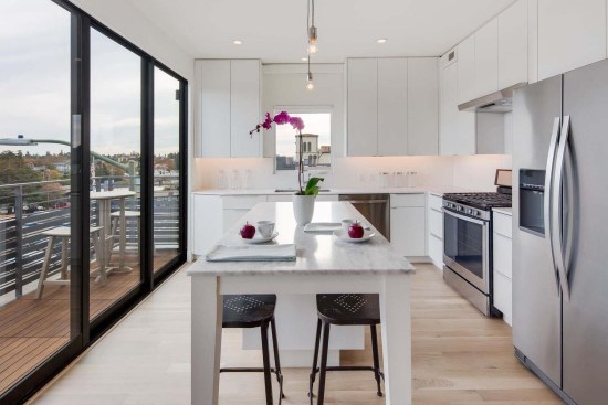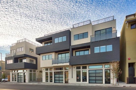 Piedmont Walk is a diverse mixed-use development of creative small businesses, apartments, and townhomes situated on a very walkable stretch of Piedmont Ave. Located at the north end of Piedmont Avenue, one of Oakland’s most successful commercial districts, Piedmont Walk takes advantage of Oakland’s unique mini lot subdivision rules, which allows for individual homeownership where it did not previously exist. The project is a hybrid development consisting of 3 small live/work triplexes facing the street and 4 single family townhomes in the rear of the site, all of which sit on 7 fee simple lots. The architectural expression presents a modern interpretation of the commercial streetscape, but with a horizontal interplay of bay window and balcony projections, which engages the adjacent neighborhood context and character.