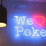 STUDIO DOHO developed an “Urban Surf” concept for new Shanghai-based restaurant POKE POKE. The 32 sqm project, situated on the ground floor of an old Shanghainese lane house in the Jing’an District of the city, makes a bold statement with its gradient blue façade and surfboard inspired countertops.