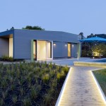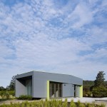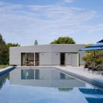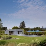 This wine country pool house|garden folly is carefully scaled to both anchor the landscape yet tread lightly upon it. A few simple moves create a sculptural object in the garden that captures shadows in subtly changing ways over the course of the day. The siting of this pool house, located in a lush and rolling rural setting, is keyed to the orientation of the main house, then subtly shifts into alignment with the pool and landscape beyond as well. The plan of the building absorbs this shift and creates a break along it between the lounging and a bathing zone. Rectinlinear shading fins play off the geometry of the folly, offering respite from the summer sun and framing views in both directions. The architectural interest here is in the precise calibrations of the most elemental fodder for an environmentally sensitive architecture: light, view, movement, scale and orientation.