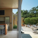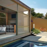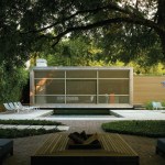 For a poolside pavilion in the backyard of a private residence in San Antonio, local firm Poteet Architects erased all but the faintest barrier between indoors and out. Tucked in the backyard of a remodeled historic 19th century home, the rectangular pavilion is essentially a tricked out cedar-framed porch covered in a fine bronze screen. The wind breezes in and the bugs stay out.