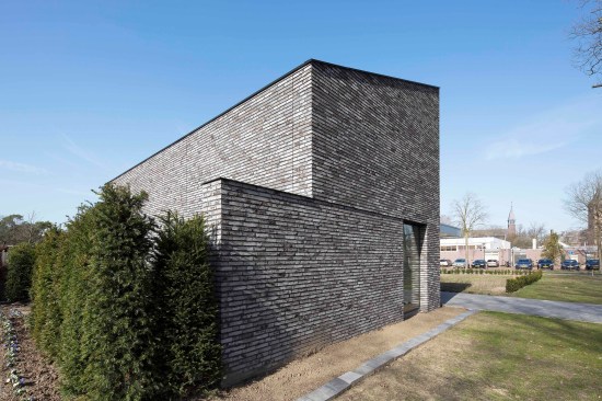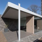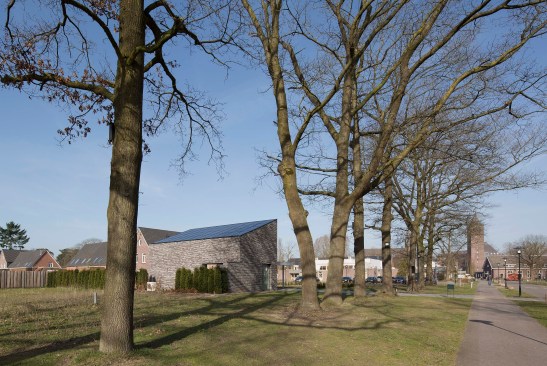 The design shows that the facilities to achieve this have great aesthetic value. Thick insulated walls provide a robust understated look, the sharp lined shiny roof ensures a tight termination of the volume and solar blinds on the south and west provide a powerful lining.