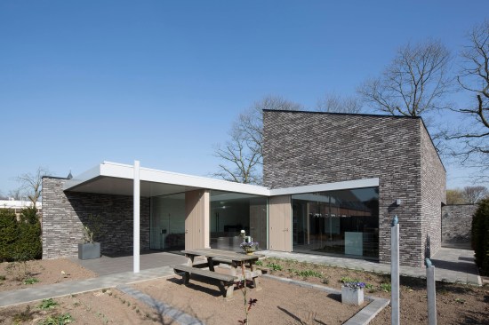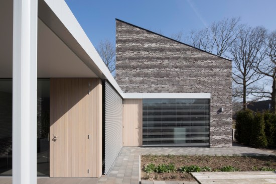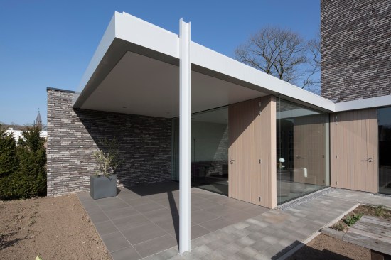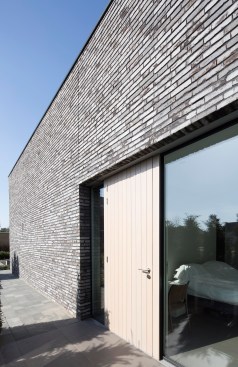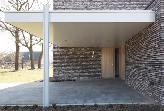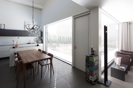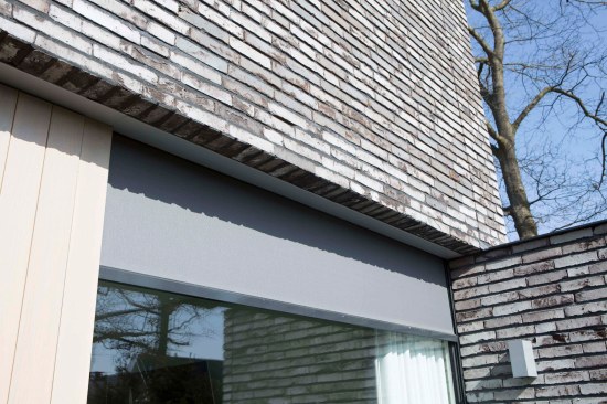While designing the house sun orientation was decisive. All the areas in need for a lot of light and heat are oriented on the sunny side. This maximizes the light and the heat advantage of the sun. The integrated solar blinds and screens holds out the sun in the warmer period. These sun blocking facilities have become an essential part of the design. The solar blinds on the south and west elevations are placed in plain sight and the canopy of the terrace is aligned in the same size.