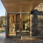 They placed three shifting volumes within the rock rooms that gently respond to the site’s natural slopes and plateaus. New stone walls interact with the existing stone ledges, and tightly constructed SIP enclosures allow for strategic slices in the envelope, opening up the interior to select views of the landscape. The measured and judicious use of wood-framed triple-light glazing minimizes thermal transfer “weak spots” and strategically orients glazing to benefit from seasonal heat rejection or gain.