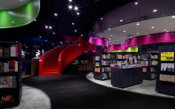 MOD’s first bookstore is located in ION Orchard, Singapore’s premier new mall. We sought to re-define common issues in bookstores, redefining way-finding with new canopies and signage at ceiling height that branched off from a sinuous central SPINE. A sculptural stair linking the two floors becomes a spatial art feature, leading from books to stationery on the 2nd floor.