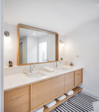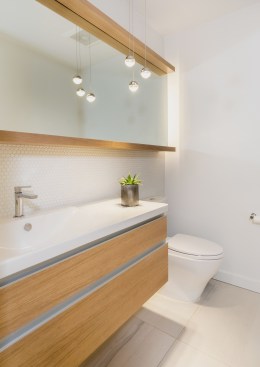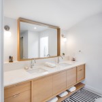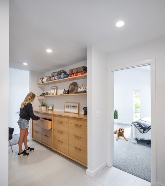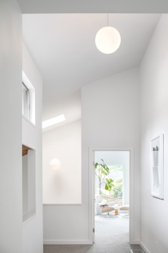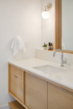 A light material palette and carefully composed openings keep this deep floor plan bright and cheerful throughout. Sight lines terminate to daylit landscapes and each room borrows light from another. Clean, modern detailing is carried throughout the 2800 sf house. The design of this home, while brave and spirited, is an understated backdrop to the personality and lifestyle of the active family living here.