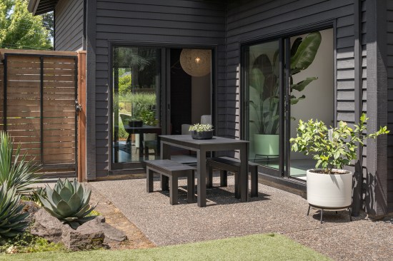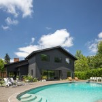 Our intervention modernized all the spaces and opened the house up both internally and to the landscape beyond. The front facade creates a playful interaction with the street, highlighting the covered outdoor spaces. The glassy rear facade connects the kitchen and family room to the pool terrace.