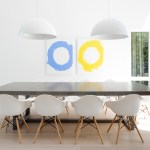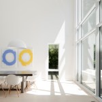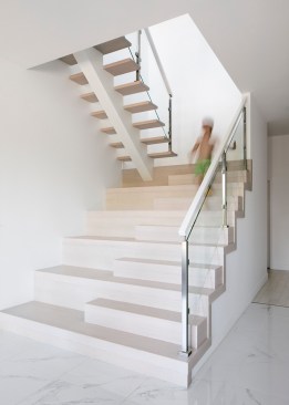 For an open concept, we have created living areas on two levels at the main floor and for a transparency effect, we have added two oversized glassy sections.