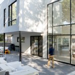We have designed a three-storey layout, including a garage, a training room, an indoor synthetic surface skating rink and a large kitchen for large receptions. A particular attention has been paid to the windows to maximize the contribution of natural light and to increase the views on the outside panorama. The size of the windows and their jambs at the level of the ground give the impression of inhabiting the outside.