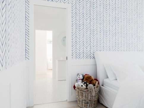 The level of the land has been a technical and structural challenge for the exterior layout and foundations of the residence. All in length, the house is cut out by a path of wood that separates the swimming pool area and the green space. In addition, we have planned an outdoor kitchen, communicating with the interior, under the overhang on the floor, to allow the family to use the barbecue year round.
