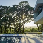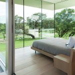 The other side of the house is a different story: Sliding glass doors in the double-height living room open to expansive views of the vines on the hilly site, as well as a large patio with a pool, outdoor kitchen, and dining areas. Family bedrooms on the second floor take advantage of these views too, but perhaps the best vistas are reserved for the guests—a glass-enclosed, ground-floor bedroom projects out from the house, offering a view of the wine country unlike any other.