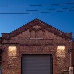 – A central portal was opened, for vehicles and pedestrians alike (design problem: concealed security shutter, sectional truck bay door, accessible entry on property line, all in “one move”).