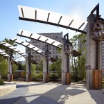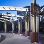 Encouraging pedestrian movement along Ripley Avenue and visually connecting to the residential entry, the plaza draws both pedestrians and patrons of the Capital Crescent trail. As a highlight of the plaza, a large scale kinetic installation encourages participation through interaction, and creates an area of respite along the trail.
